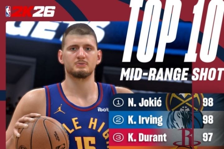 在中投前十排名中,约基奇和欧文以98并列第一,紧随其后的是97的杜兰特、布克、亚历山大、内姆哈德和库里、之后是96的德罗赞、麦克布莱德和米德尔顿。