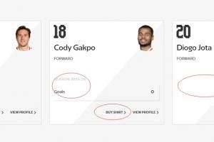 利物浦官网的球员列表,仍保留若塔的资料,但是仅有简介,没有数据显示和球衣购买选项。